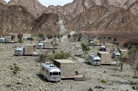 | Des installations de "glamping", le 15 février à Hatta, à Dubaï. |