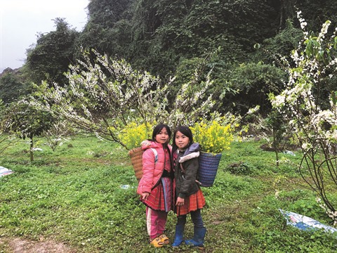 | Deux fillettes H’mông à Tân Lâp, district de Môc Châu, province de Son La (Nord). |