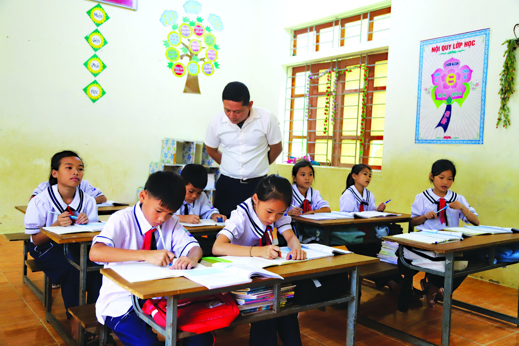 | Un cours de mathématiques pour les élèves en 5e année à l’École primaire de Nga My. |