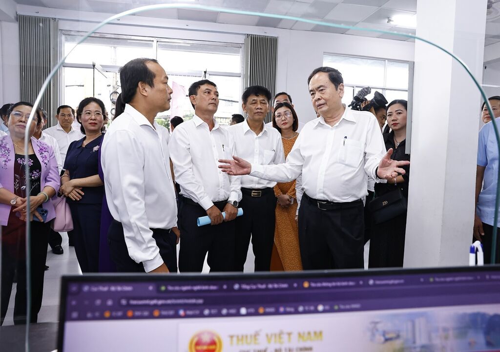 | Le président de l'Assemblée nationale, Trân Thanh Mân, en visite de travail au Centre administratif du quartier de Phu Loi (ancienne province de Soc Trang). |