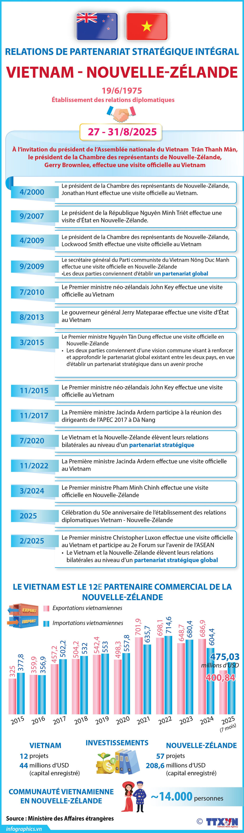 Cette année, le Vietnam et la Nouvelle-Zélande célèbrent le 50e anniversaire de leurs relations diplomatiques et ont élevé leurs liens au rang de partenariat stratégique global. Que représente, selon vous, cette étape importante et comment la voyez-vous bénéficier à la coopération bilatérale dans les années à venir ? Quels sont les domaines de collaboration prioritaires pour les deux pays actuellement ?