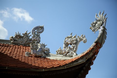 Les sentences parallèles et les panneaux transversaux sont en calligraphie vietnamienne. Après avoir traversé le portique à trois entrées (Tam quan), on voit un temple dédié aux héros morts pour la Patrie.