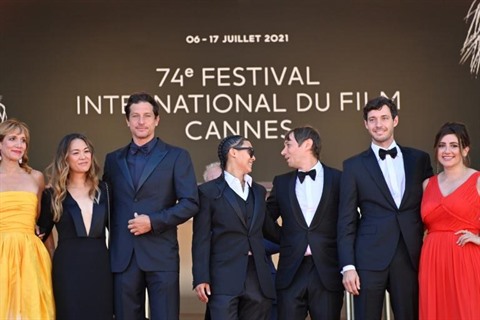 "En salles, on partage la tristesse, la peur, le rire", a-t-il ajouté sur une scène du Palais des festivals où venaient de se succéder, en forme de passage de témoin, deux légendes d’Hollywood : Francis Ford Coppola, finalement reparti bredouille avec Megalopolis, et George Lucas, à qui il était venu remettre sa Palme d'or d'honneur.