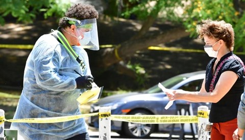 | Sur un site de tests du coronavirus à Los Angeles, en Californie, le 30 juin. |