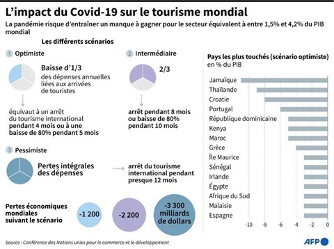 Mais alors que démarre la saison touristique estivale, de nombreux pays essaient, malgré cette évolution inquiétante, de limiter un manque à gagner déjà considérable pour le tourisme et les secteurs qui en dépendent : il pourrait atteindre entre 1.200 à 3.300 milliards d'USD, selon l'ONU.