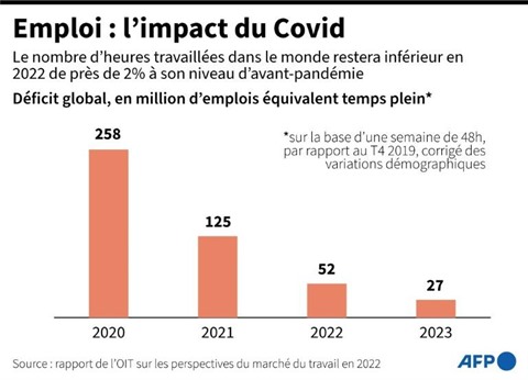 Le nombre de chômeurs pour 2022 est estimé par l'OIT à 207 millions (5,9%), contre 186 millions en 2019.