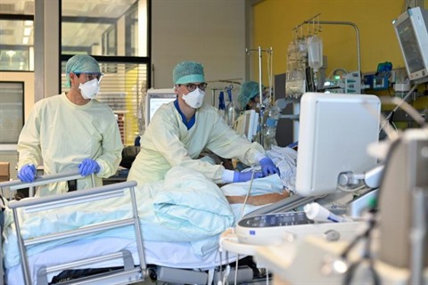 | Examen d'un patient atteint du COVID-19 à l'hôpital universitaire d'Aix-la-Chapelle, le 20 janvier. |