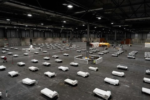 | Photo fournie par la communauté autonome de Madrid montrant un hôpital temporaire monté dans le centre des expositions Ifema à Madrid, le 21 mars |