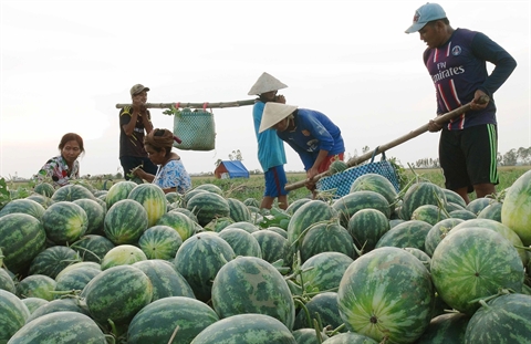 | Dans le Sud, on réserve une grande superficie de terres arables à la pastèque. |