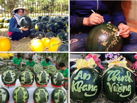 La pastèque trône pendant les premiers jours de la fête sur l’autel des ancêtres, comme offrande cultuelle. Et pourtant, l’adage populaire Xanh vỏ đỏ lòng (Peau verte, entrailles rouges) pour décrire le fruit à une nuance péjorative : il fait allusion aux hypocrites. La pastèque aurait même des propriétés curatives. Elle facilite la digestion, et son jus guérit une certaine fièvre. Originaire d’Afrique, la plante est cultivée dans les pays chauds. Son introduction au Vietnam fait l’objet d’une vieille légende dont le héros Mai An Tiêm, exilé sur une île déserte, rappelle Robinson Crusoé. En voici l’histoire.