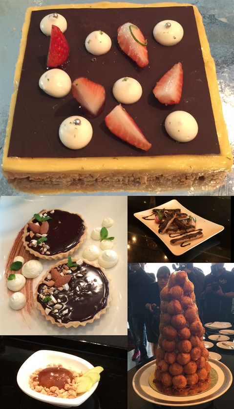 Le moment tant attendu est arrivé. Debout devant les juges, les cinq finalistes présentent leur travail, égrainant des anecdotes personnelles et passionnées. Pham Phuoc Thành, médecin dans la vie et venu tout spécialement de Hô Chi Minh-Ville, explique son choix d’une tarte au citron et aux fraises : «C’est d’abord pour les couleurs rappelant à la fois celles du Vietnam et de la France. Le disque de chocolat est également une forme d’hommage au cacao national». Pour le jeune collégien, les éclairs représentent l’attachement pour la famille, et avoue rêver de devenir un jour pâtissier. Et à Trang de révéler que sur ses cinq tartelettes aux pommes reconstituées sous la forme d’un dôme gélatineux, seule une seule a pu être terminée.