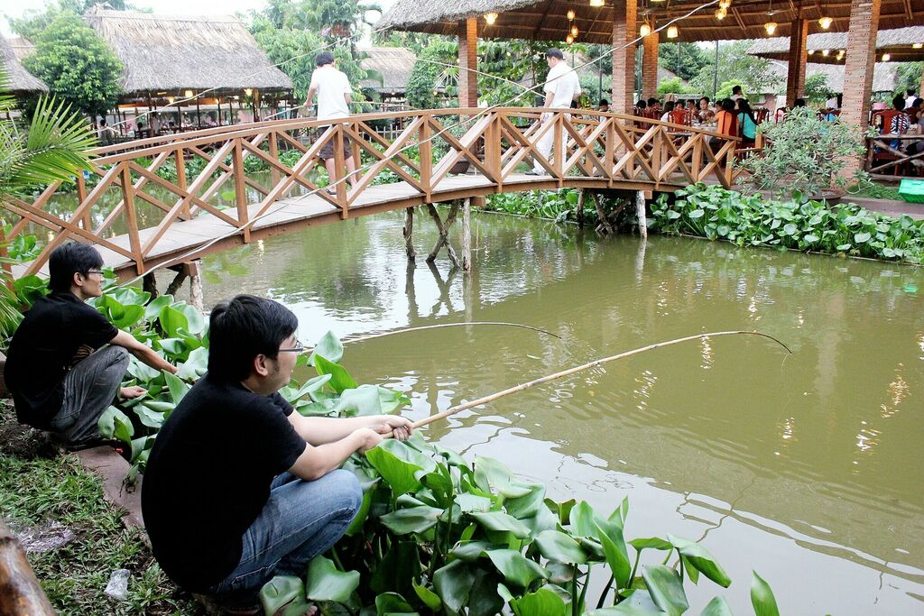 Les lacs ou les étangs de pêche sont devenus de véritables espaces de rencontre pour les pêcheurs non professionnels. Une bonne technique de pêche d’acquière par l’expérience et le choix de l'emplacement idéal pour pêcher est également une composante importante. Il est aussi essentiel de surveiller le soleil et le vent, le courant de l'eau, en plus de reconnaître les espèces de poissons pour préparer des appâts adaptés. Les pêcheurs utilisent des appâts naturels comme le maïs mélangé, les insectes, les crabes, les escargots, ou même de la thinh - une poudre de riz grillé.