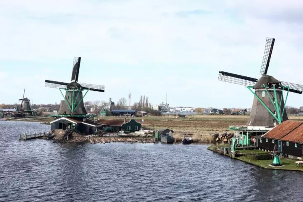 | Des moulins à vent, à Zaandam, près d'Amsterdam, le 14 mars. |