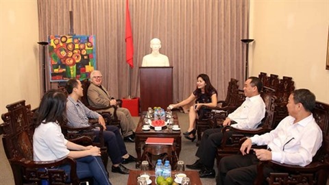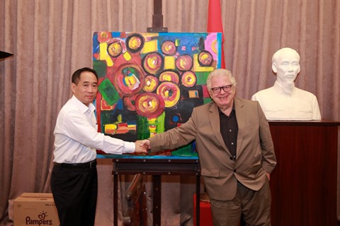 | L’ancien ambassadeur grec, Nicolaos D. Kanellos (droite) a livré ses peintres au Musée des beaux-arts du Vietnam. |