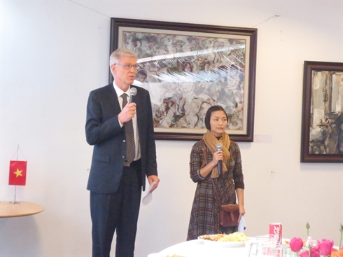 | L’ambassadeur du Danemark au Vietnam, John Nielsen, lors du vernissage de la 3e exposition de la peinture vietnamienne, le 25 mars à Hanoi |