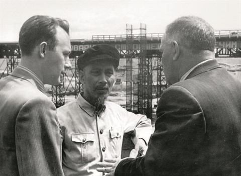 | Le Président Hô Chi Minh visita le chantier de construction d'une centrale en ex-URSSS, en 1955. |