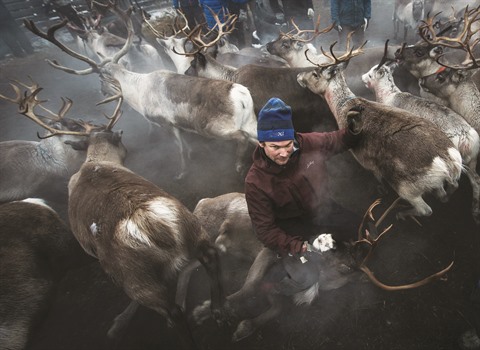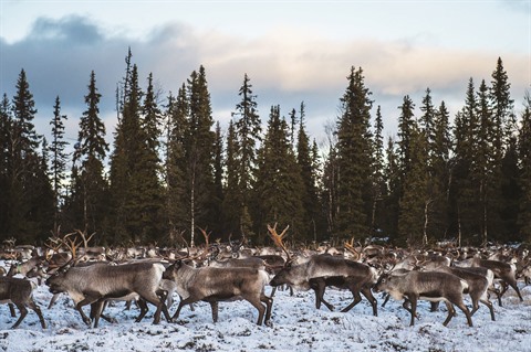 À Dikanäs - Gäjka en langue sami -, les éleveurs en quad ou motoneige préparent la transhumance en menant des milliers de cervidés jusqu’à un vaste enclos. Là, les faons sont marqués, les adultes triés : les plus gras sont envoyés à l’abattoir, les autres partent vers des terres boisées riches en lichen, un élément précieux de leur alimentation.