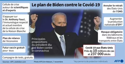 | Programme du président élu américain Joe Biden pour lutter contre la pandémie du nouveau coronavirus. |