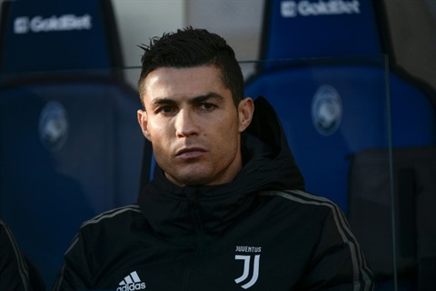 | La star de la Juventus, Cristiano Ronaldo, sur le banc de touche lors d'un match à Bergame, le 26 décembre 2018. |