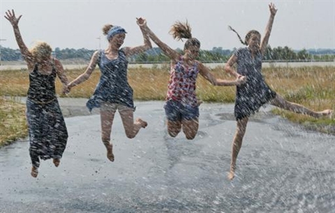 | Des jeunes femmes polonaises se rafraîchissent dans le jet d'une bouche d'incendie à Lodz (Pologne), le 9 août. |