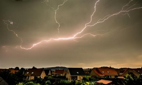 | Des éclairs déchirent le ciel au-dessus de Godewaersvelde, en Alsace, lors d'une vague orageuse le 13 août. |