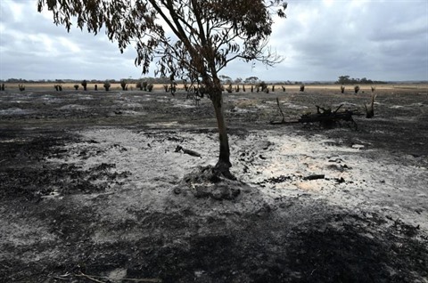 | Une exploitation agricole de Kangaroo island ravagée par les incendies, le 16 janvier. |