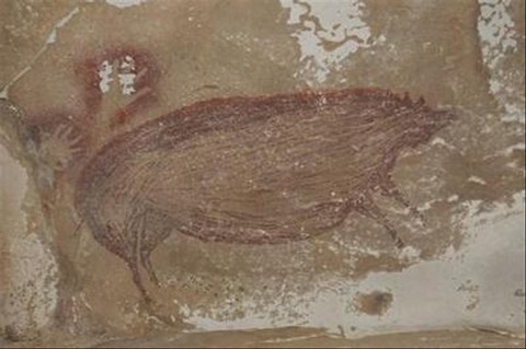 Des membres de la communauté isolée Bugis ont affirmé à l'équipe que c'était la première fois que des Occidentaux y accédaient. Mesurant 54 cm de haut pour 1m36 de large, cette peinture d'un sanglier des Célèbes a été réalisée grâce à un pigment d'ocre rouge foncé.