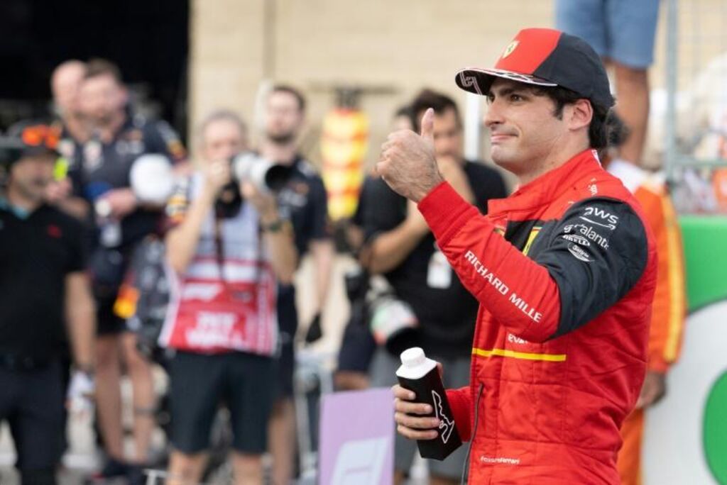 | Le pilote Carlos Sainz Jr (Ferrari), après avoir signé la pole position du Grand Prix des États-Unis, à Austin, le 22 octobre. |