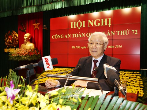 Dans son allocution, le secrétaire général Nguyên Phu Trong a déclaré apprécier vivement les acquis des forces de police populaire en 2016, avant d’indiquer les orientations et tâches pour 2017. Il s’agit de continuer de veiller à l’édification du Parti et de forces de police populaire vraiment saines et fortes, fidèles au Parti, à l’État et au peuple, toujours engagées dans la voie vers le socialisme.