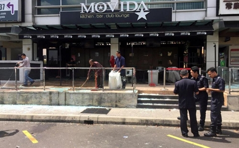 | Devant le restaurant Movida dans l'État de Selangor où est survenue cette attaque à la grenade impliquant l'État islamique. |