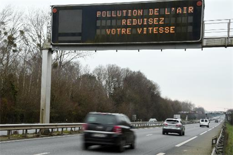 | Des panneaux demandent aux automobilistes de réduire leur vitesse face à un pic de pollution, le 1er janvier 2015 près de Rennes. |