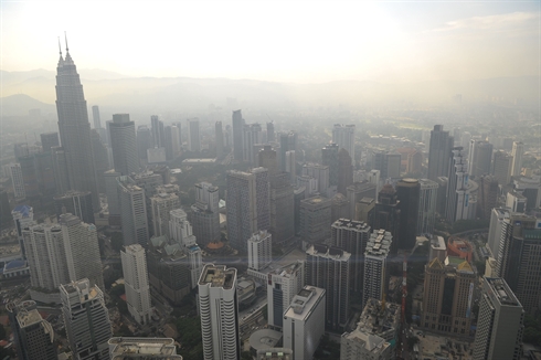 | Une vue générale de la capitale malaisienne Kuala Lumpur qui a subit la pollution de l’air par des incendies en juin dernier en Indonésie |