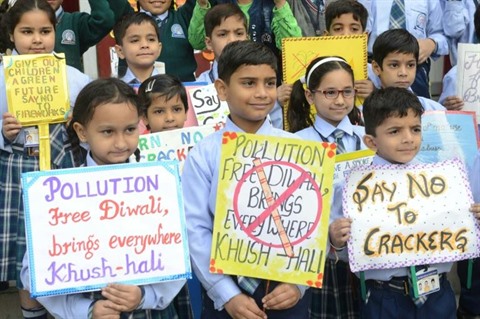 | Une manifestation d'enfants contre l'usage de pétards pour la fête hindoue de Diwali, le 5 novembre à Amritsar. |