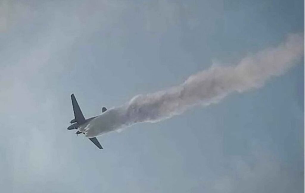 | Un avion de l'armée de l'air largue de l'eau au-dessus du district de Muang à Chiang Rai pour aider à nettoyer la poussière de l'air et à alléger le smog étouffant le 28 mai. |