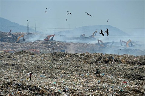 | Incendie dans une immense décharge à ciel ouvert à Chennai, en Inde, le 29 avril. |