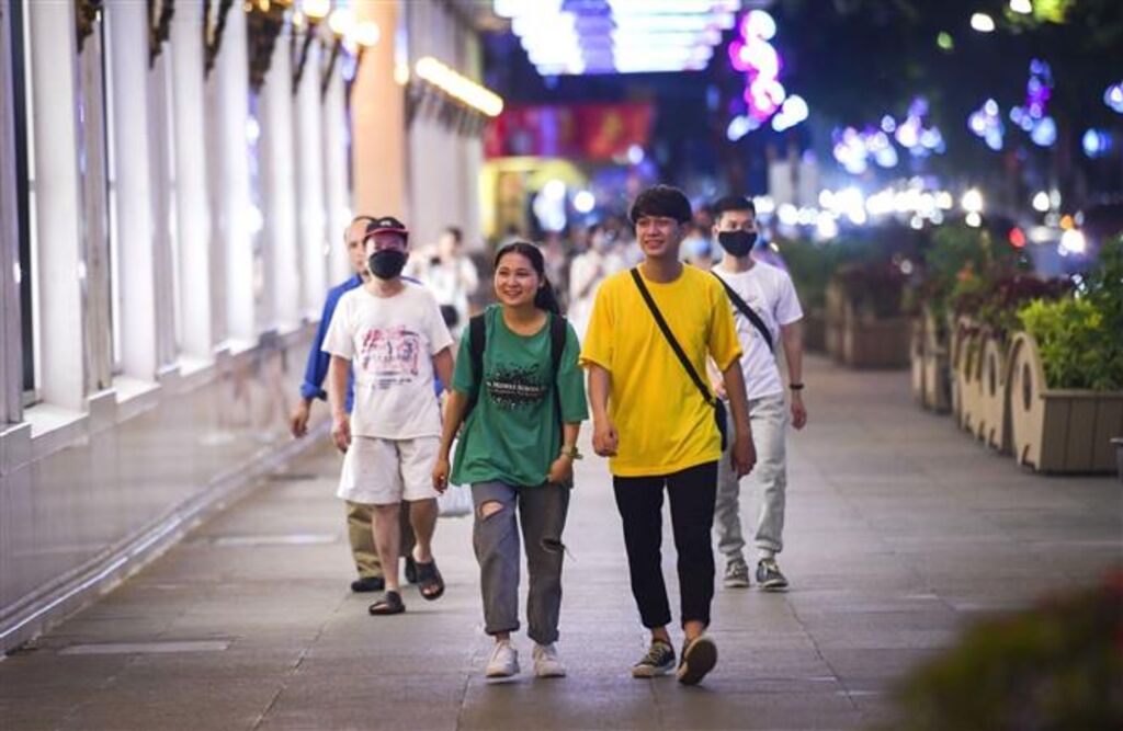 | Des visiteurs à la zone piétonne au tour du lac de Hoàn Kiêm, à Hanoï. |