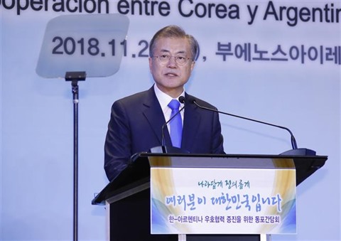M. Moon a fait cette déclaration lors d'une conférence de presse avec des journalistes locaux pendant son vol à destination de la Nouvelle-Zélande, où il effectue une visite d'État après avoir participé au sommet du G20 en Argentine.