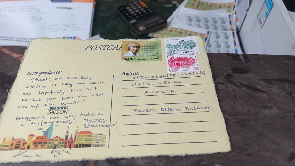 Le tarif pour l'envoi d'une carte postale à l'étranger est actuellement de 29.500 dôngs. Les touristes prennent plaisir à choisir leur timbre et peuvent d'ores et déjà acquérir ceux à l'effigie de l'année du Serpent. De nombreux visiteurs s'amusent à envoyer des messages comme : "Sommes au Vietnam. Le temps est parfait. Nous vous envoyons un joli rayon de soleil saigonnais !"