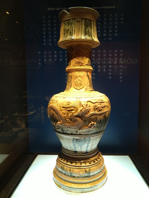 Ce sont 22 objets de l’exposition qui sont conservés au MNHV. Il s’agit d’artefacts spéciaux, rares, datant notamment de la période de déclin de la poterie vietnamienne. Plus précisément, ce sont des œuvres de Bat Tràng utilisés dans des maisons communales, pagodes et temples, collectées par les Français dans le passé.