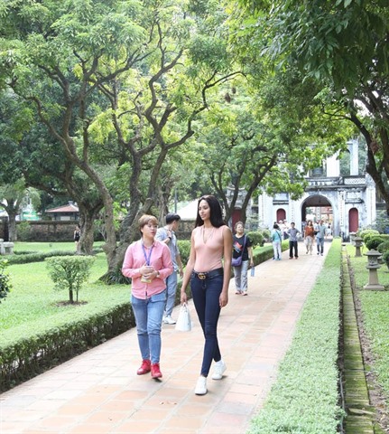 | Miss Haïti en visite au Temple de la Littérature. Photo: Xuân Thuy/CVN |