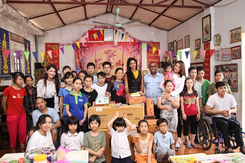 | Raquel Pelissier offre les cadeaux au Centre Quynh Hoa. Photo: Quê Anh/CVN |