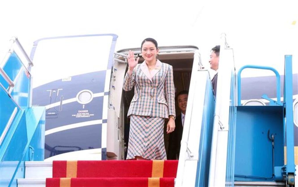 | La Première ministre thaïlandaise Paetongtarn Shinawatra est accueillie à l'aéroport international de Nôi Bài, à Hanoï, le 15 mai. |