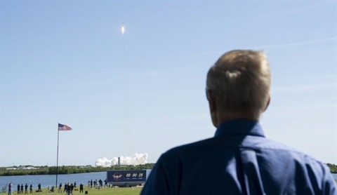 | Le patron de la NASA, Bill Nelson, regarde le décollage d'une fusée de SpaceX vers l'ISS, le 8 avril. |