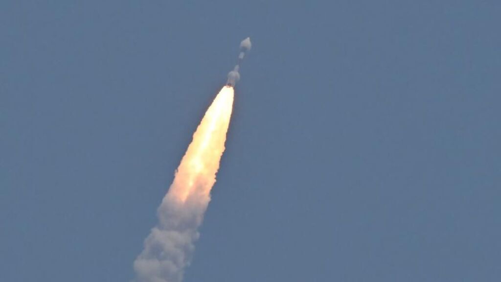| La fusée PSLV XL transportant la sonde Aditya-L1 lancée le 2 septembre 2023. |
