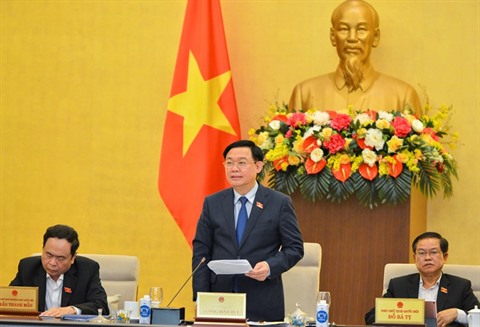 | Le présodent de l"Assemblée nationale Vuong Dinh Huê (debout) lors d'une session. |