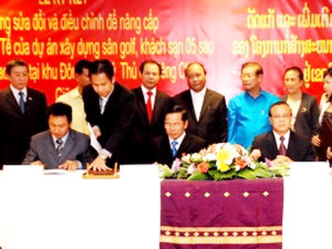 Les signataires étaient le ministre lao du Plan et de l'Investissement, Somdy Douangdy, et le président du conseil d'administration et directeur général de la compagnie par actions d'investissement et de commerce de golf de Long Thành, Lê Van Kiêm.