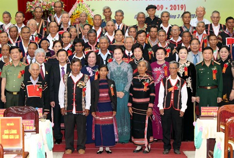 Chaque ethnie aura son représentant dans le système politique, les écarts de développement seront réduits et les communautés ethniques seront aussi égales que solidaires, comme l’ont souhaité les patriarches des villages dans leur lettre il y a 10 ans, a-t-elle indiqué. Vous avez écrit ceci : le Vietnam est un, le peuple vietnamien est un, les Hauts Plateaux du Centre appartiennent au Vietnam, les peuples des Hauts Plateaux du Centre font partie de la nation vietnamienne. Les Hauts Plateaux du Centre sont pour tout le pays, tout le pays est pour les Hauts Plateaux du Centre, a-t-elle rappelé. Elle a demandé aux autorités locales de prendre les mesures nécessaires pour aider les patriarches villageois à faire valoir leur rôle fédérateur auprès de leurs communautés. Cela sera indispensable pour le développement socioéconomique, la garantie de la sécurité et de la défense, mais aussi pour renforcer la confiance des minorités ethniques envers le Parti, a-t-elle encore indiqué.