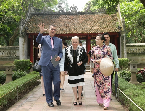 | La présidente de la Chambre des représentants du Parlement australien, Bronwyn Bishop (centre) a visité le 12 septembre le Temple de la littérature. |