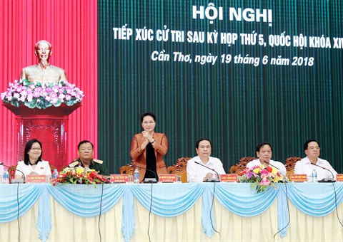 | La présidente de l'Assemblée nationale Nguyên Thi Kim Ngân rencontre le 19 juin des électeurs de la ville de Cân Tho.. |