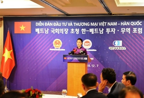 | La présidente de l'Assemblée nationale du Vietnam, Nguyên Thi Kim, au Forum sur le commerce et l’investissement entre le Vietnam et la République de Corée. |
